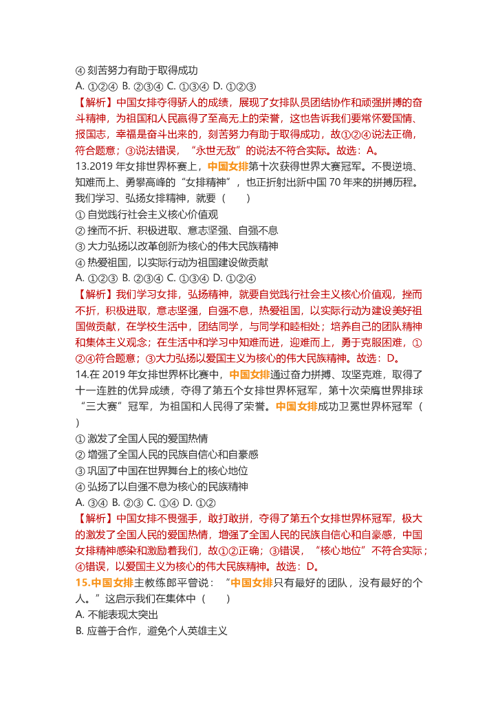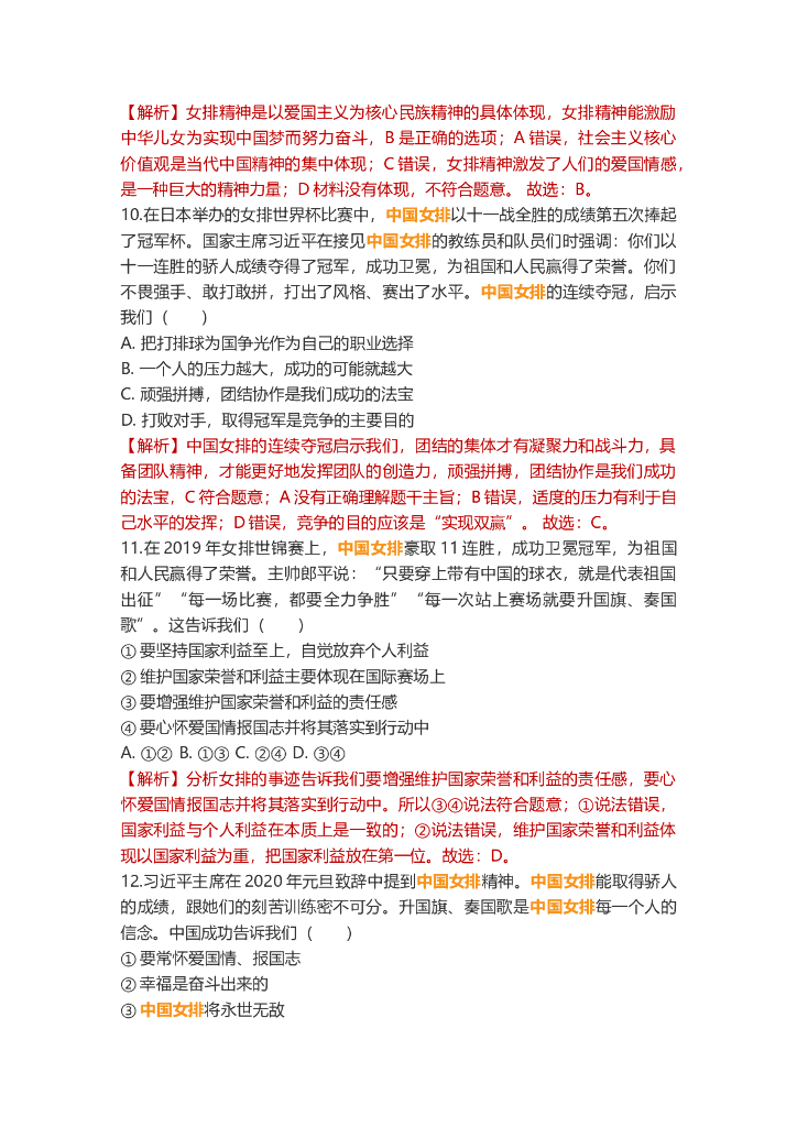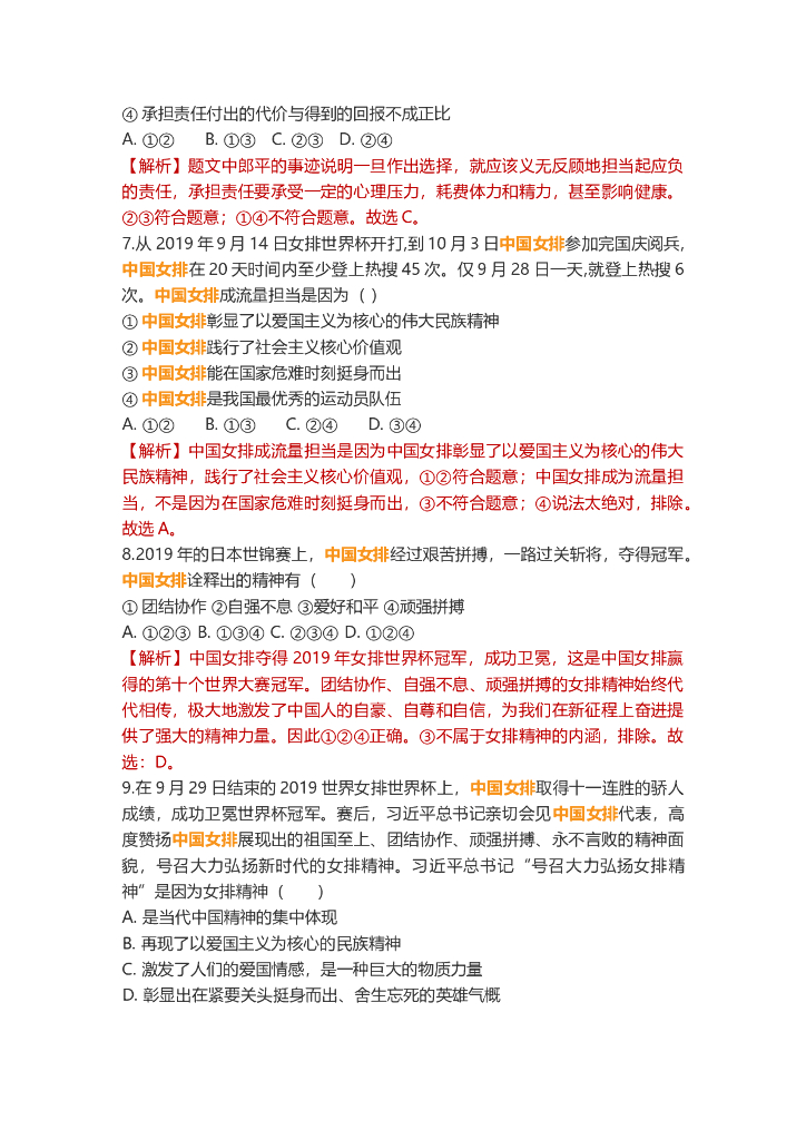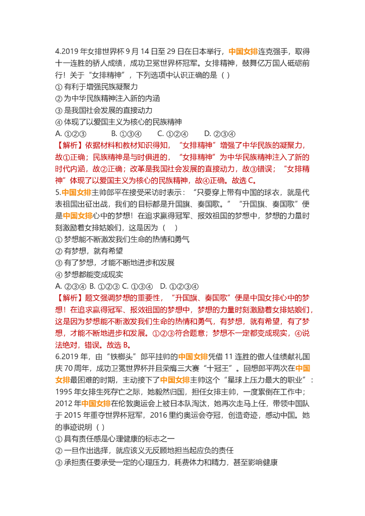 道德与法治中考重点词练习:中国女排.doc