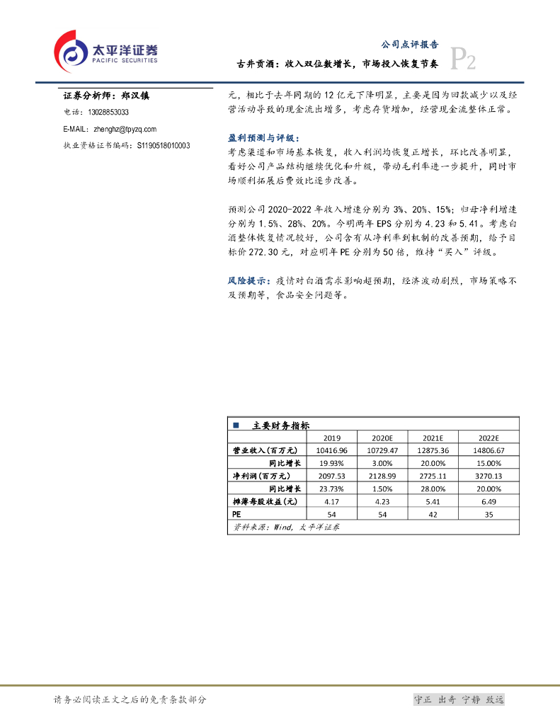 太平洋证券:古井贡酒:收入双位数增长,市场投入恢复节奏.pdf