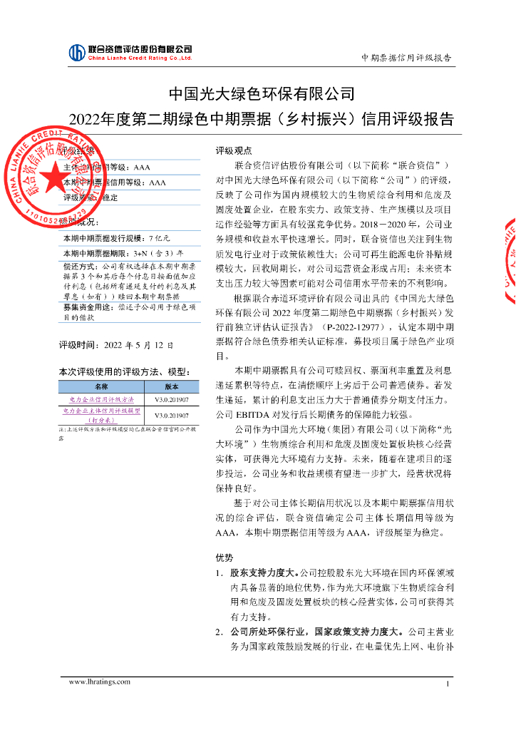 联合资信:中国光大绿色环保有限公司2022年度第二期绿色中期票据(乡村振兴)信用评级报告.pdf