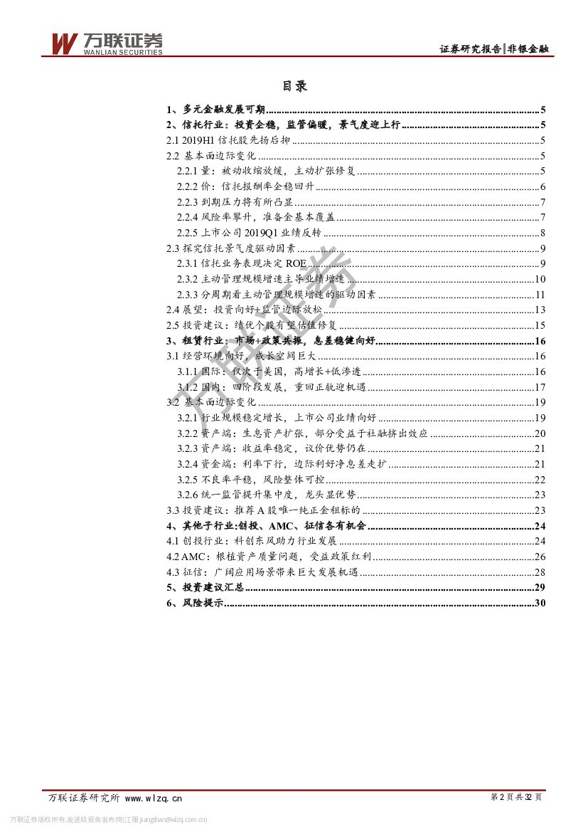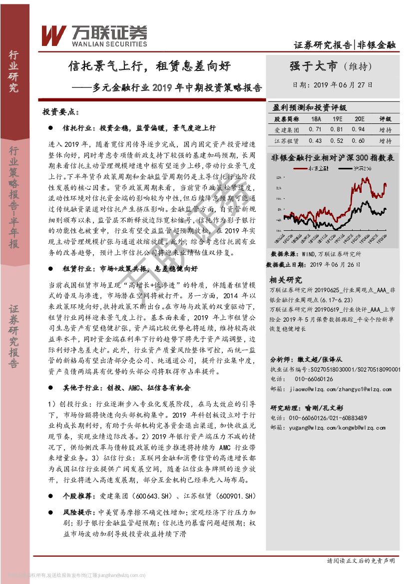 万联证券:多元金融行业2019年中期投资策略报告:信托景气上行,租赁息差向好.pdf