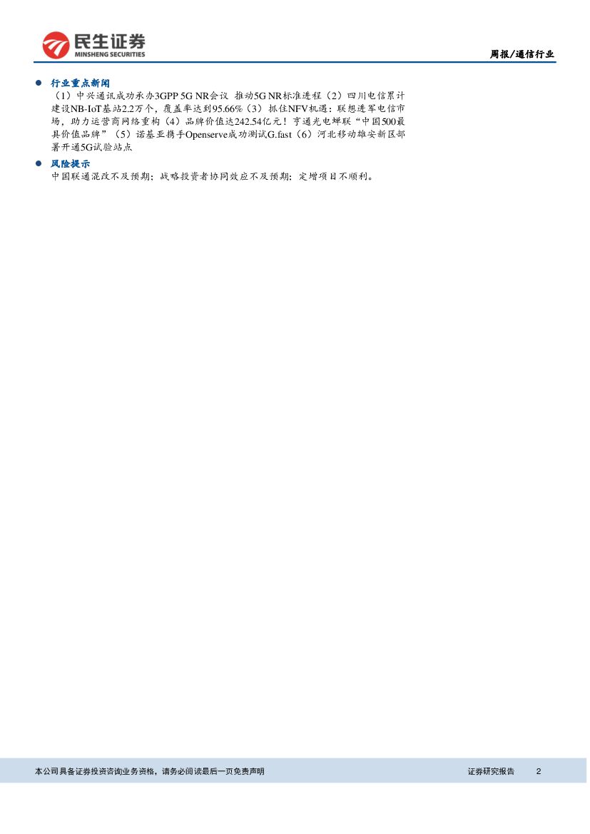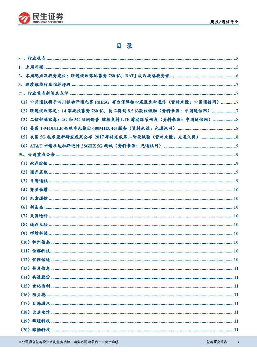 民生证券:通信行业周报:联通混改落地募资780亿,BATJ成为战略投资者.pdf