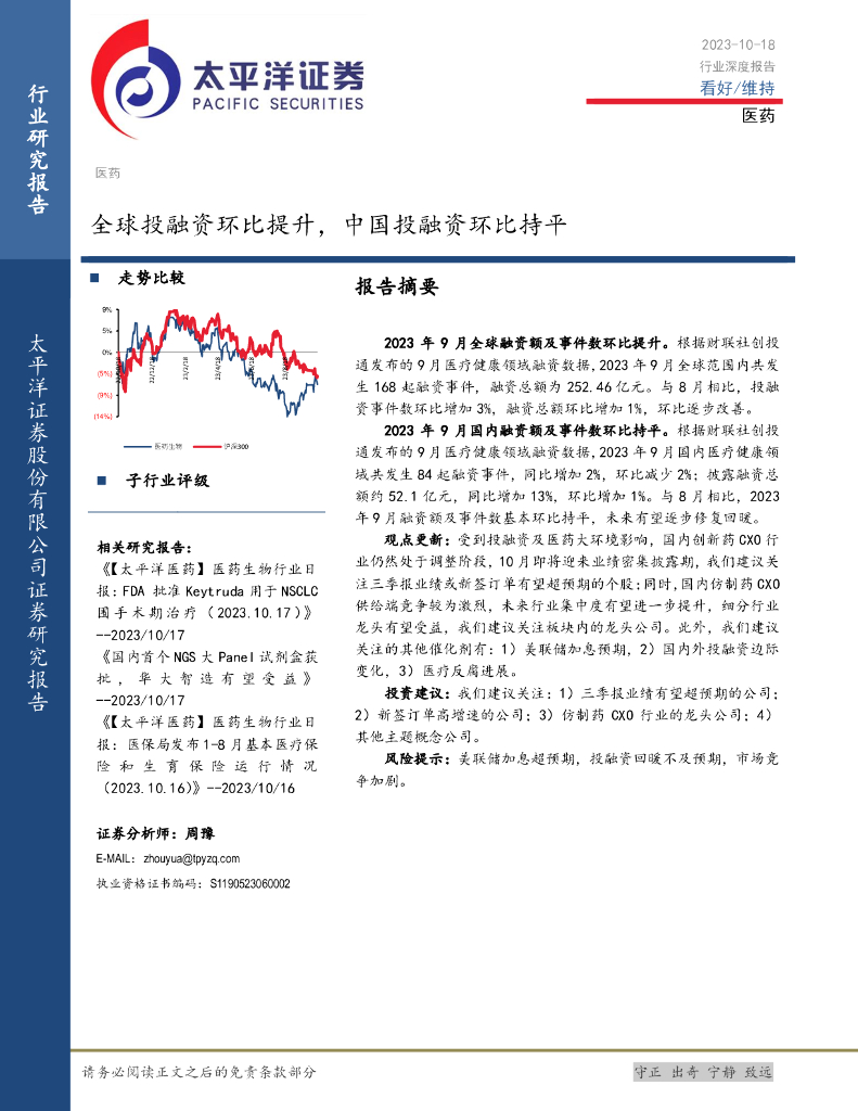 太平洋证券:医药行业深度:全球投融资环比提升,中国投融资环比持平.pdf
