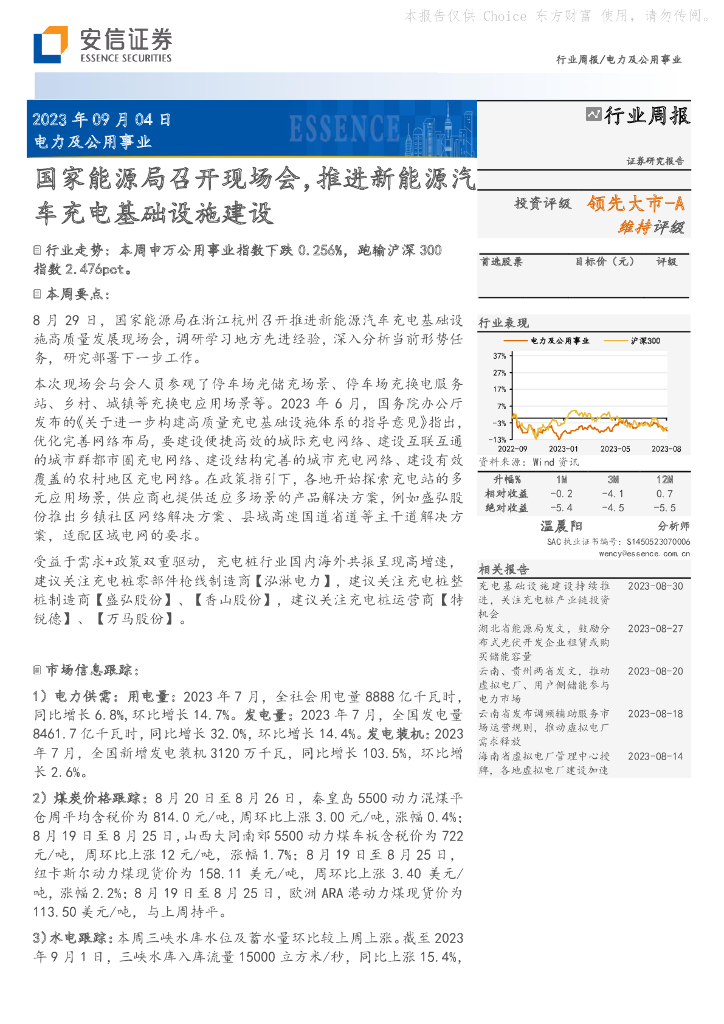 安信证券:电力及公用事业行业周报:国家能源局召开现场会,推进新能源汽车充电基础设施建设.pdf