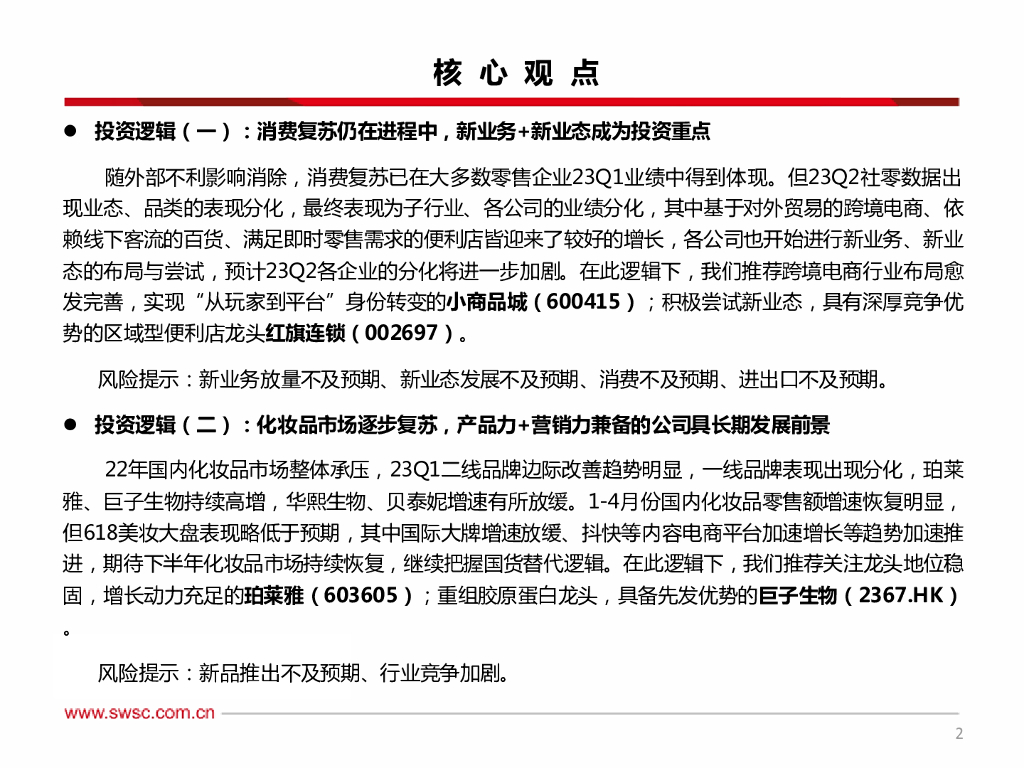 西南证券:美妆&零售行业2023年中期投资策略:零售关注新业务+新业态,美妆关注产品+营销-零售布局节奏加快,国货美妆进入新纪元.pdf