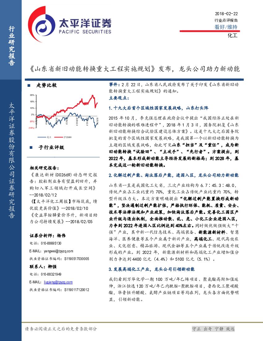 太平洋证券:化工:《山东省新旧动能转换重大工程实施规划》发布,龙头公司助力新动能.pdf
