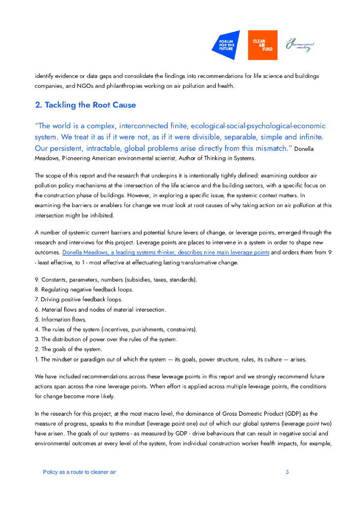Forum for the Future:2024年政策作为通向清洁空气的途径:为什么系统的、跨部门的方法很重要报告(英文版).pdf