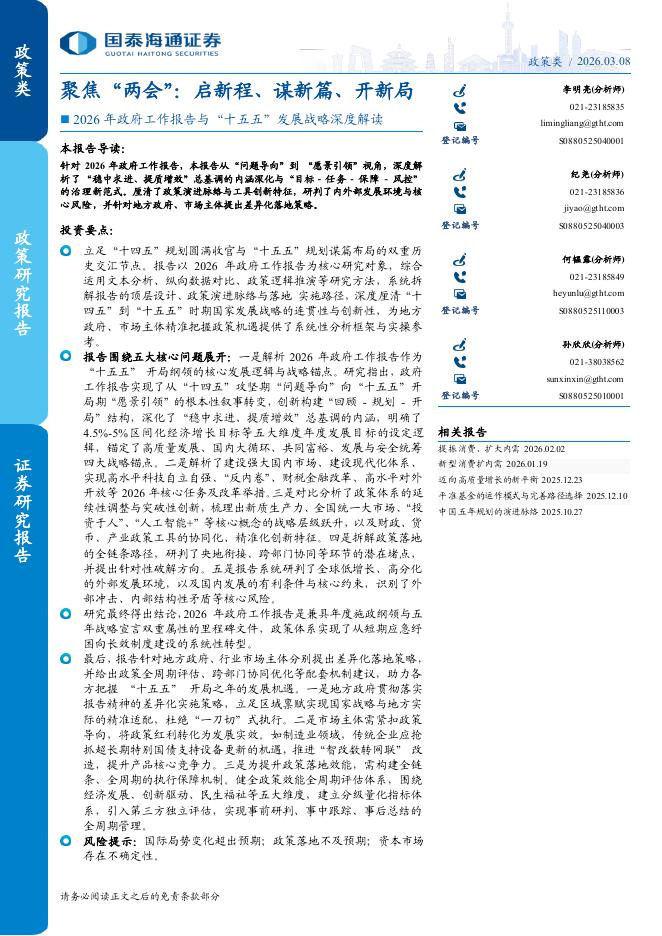 国泰海通证券:2026年政府工作报告与“十五五”发展战略深度解读-聚焦“两会”:启新程、谋新篇、开新局.pdf