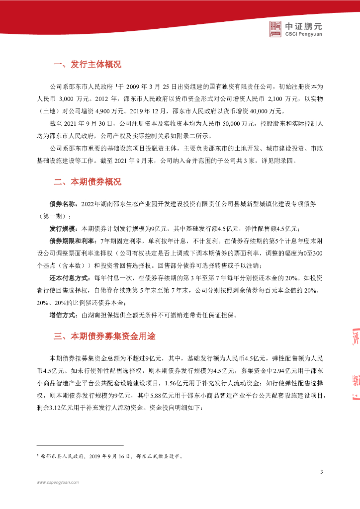 鹏元:湖南邵东生态产业园开发建设投资有限责任公司2022年县城新型城镇化建设专项债券(第一期)信用评级报告.pdf