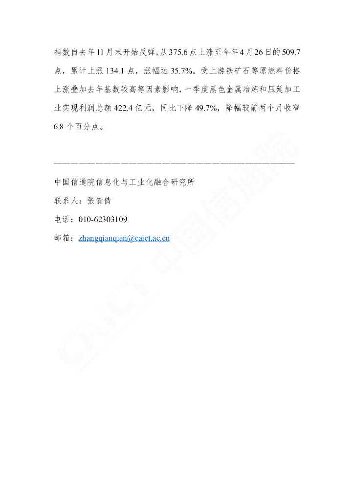 中国信通院:2022年一季度钢铁行业运行数据报告:钢铁行业生产保持低位水平.pdf