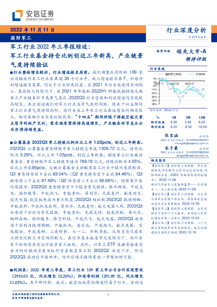 安信证券:军工行业2022年三季报综述:军工行业基金持仓比例创近三年新高,产业链景气度持续验证.pdf
