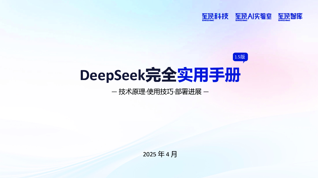 至顶AI实验室:2025年DeepSeek完全实用手册V1.5-技术原理·使用技巧·部署进展.pdf