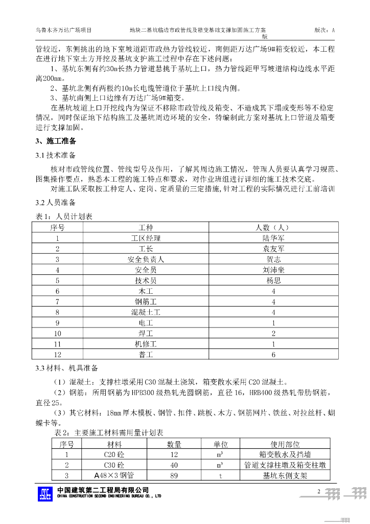基坑临边管线及箱变基础支撑加固施工方案.doc