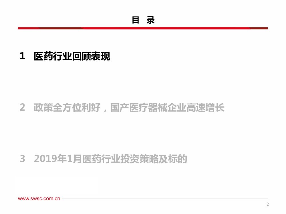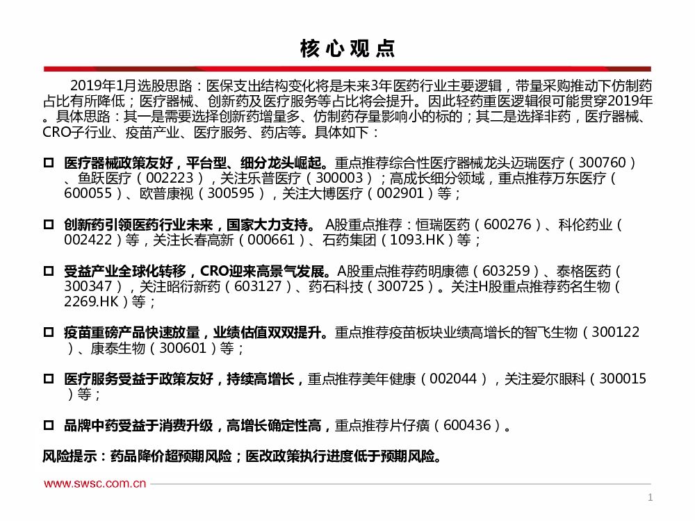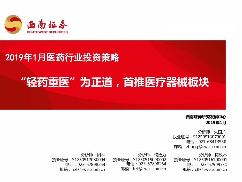 西南证券:2019年1月医药行业投资策略:“轻药重医”为正道,首推医疗器械板块.pdf
