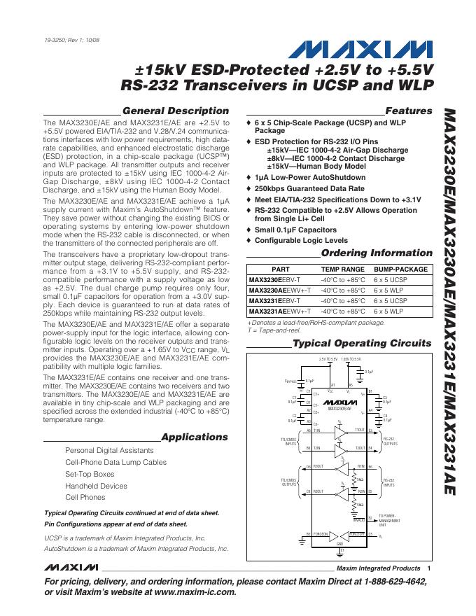 MAXIM MAX3230E/MAX3230AE/MAX3231E/MAX3231AE 数据手册.pdf