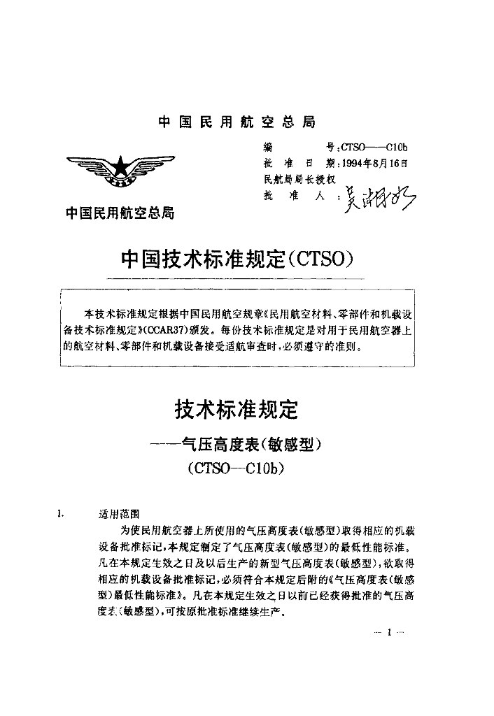 CTSO-C10b 气压高度表(敏感型)技术标准规定.pdf