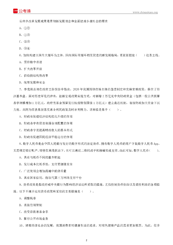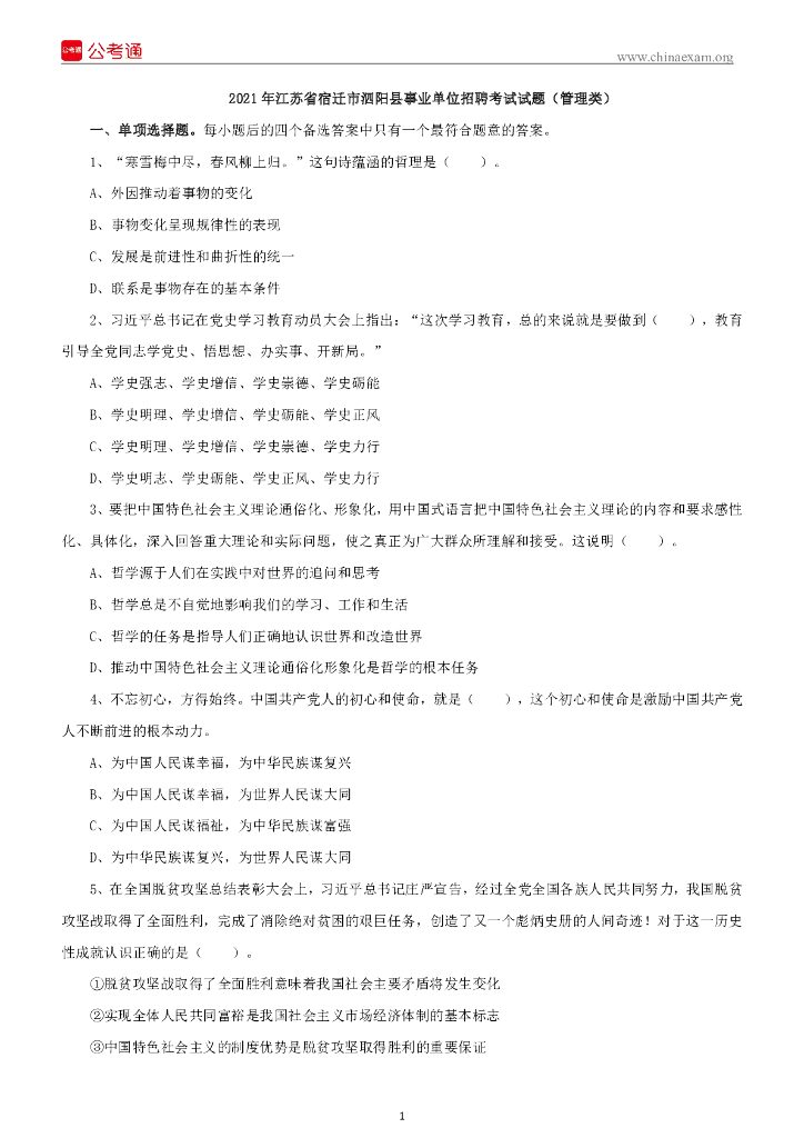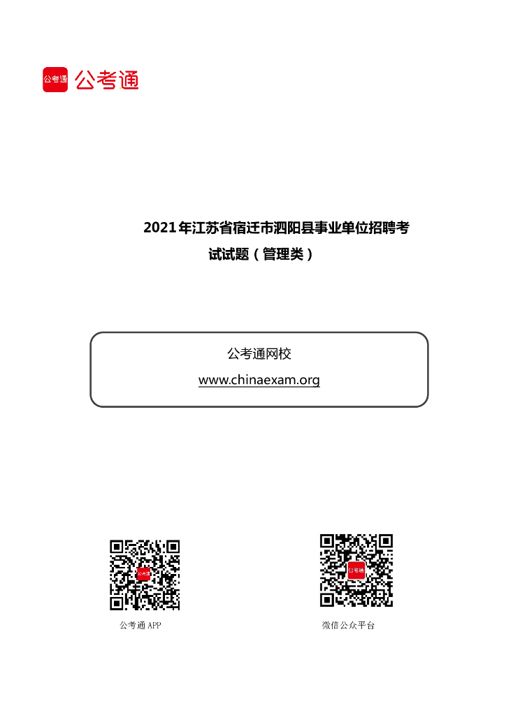 2021年江苏省宿迁市泗阳县事业单位招聘考试试题(管理类).pdf