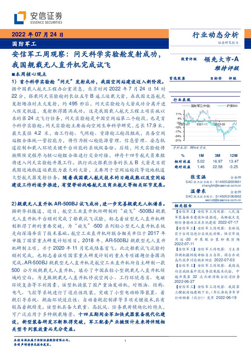 安信证券:安信军工周观察:问天科学实验舱发射成功,我国舰载无人直升机完成试飞.pdf
