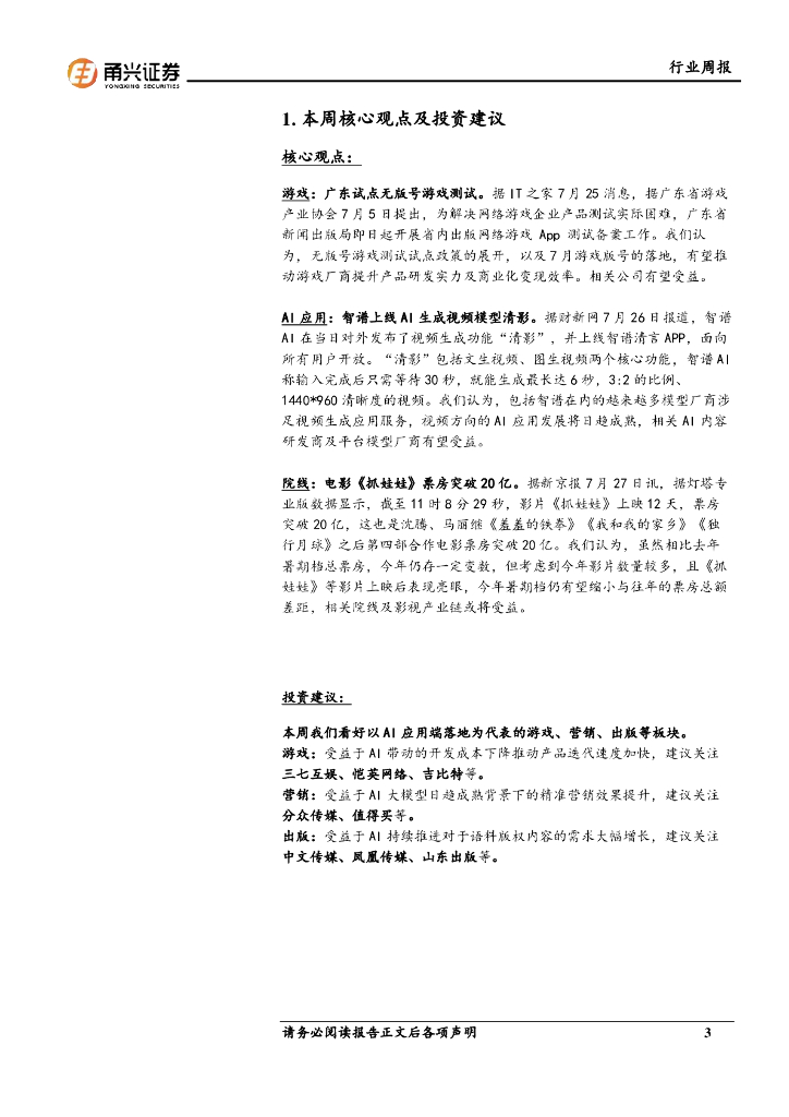 甬兴证券:传媒行业周报:广东试点无版号游戏测试,智谱上线AI生成视频模型.pdf