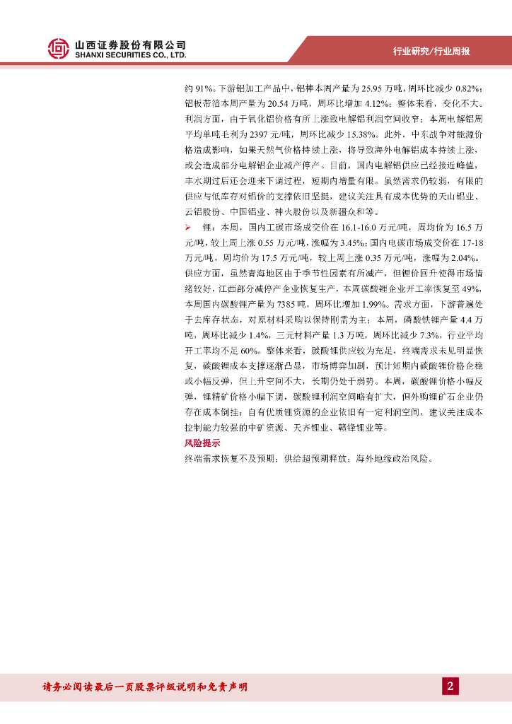 山西证券:有色金属行业周报:锂价小幅回升,关注下游需求变化.pdf
