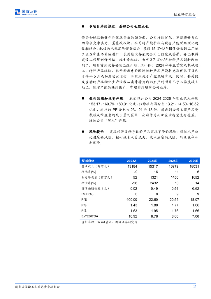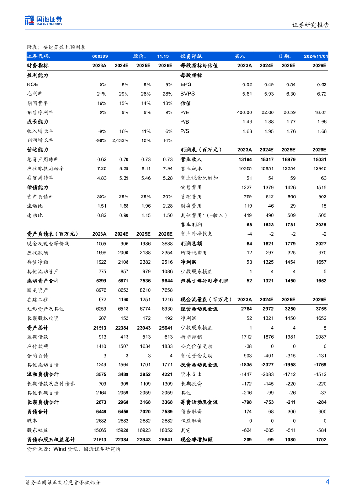 国海证券:安迪苏(600299)-2024年三季报点评:蛋氨酸销售强劲,三季度业绩同环比大幅提高.pdf