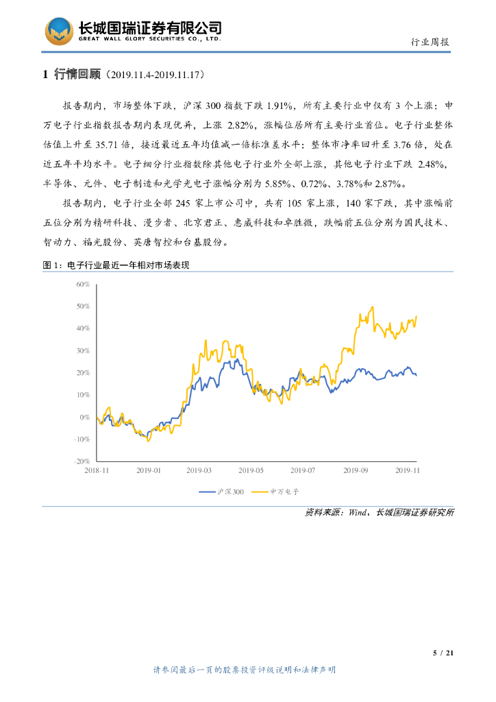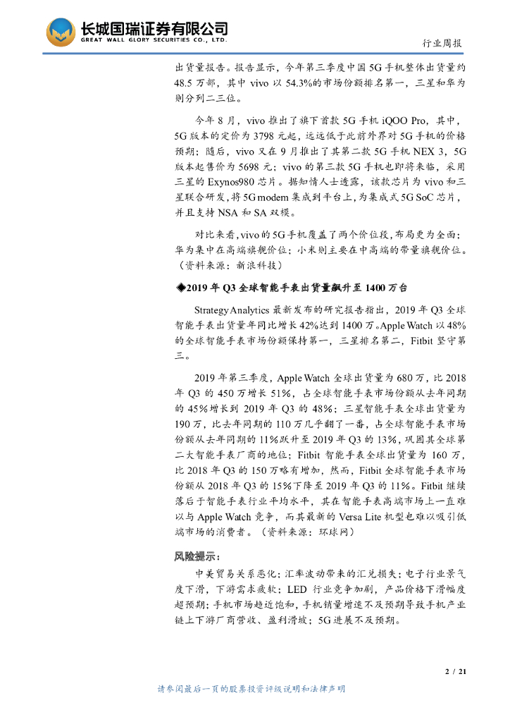 长城国瑞证券:电子行业双周报2019年第22期(总第22期):2019Q3中国5G手机整体出货量约48.5万部.pdf