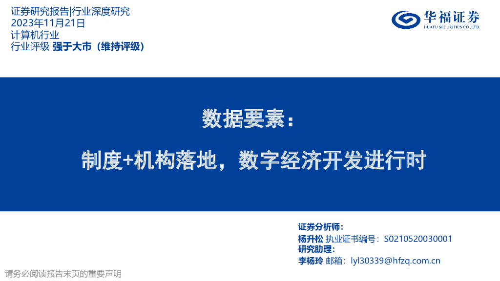 华福证券:计算机行业:数据要素:制度+机构落地,数字经济开发进行时.pdf