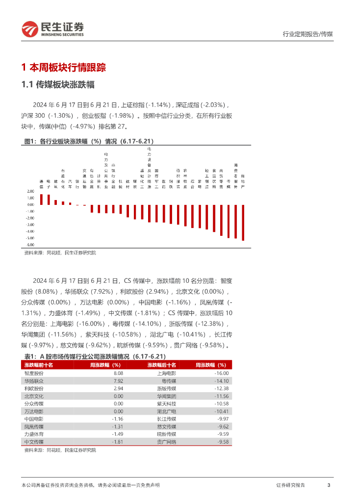 国金证券:传媒互联网产业行业研究:边走边看,等待机会