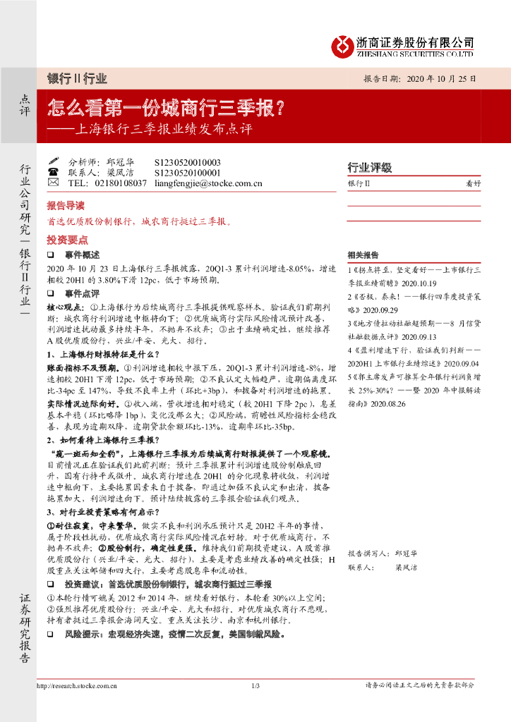 浙商证券:上海银行三季报业绩发布点评:怎么看第一份城商行三季报?.pdf
