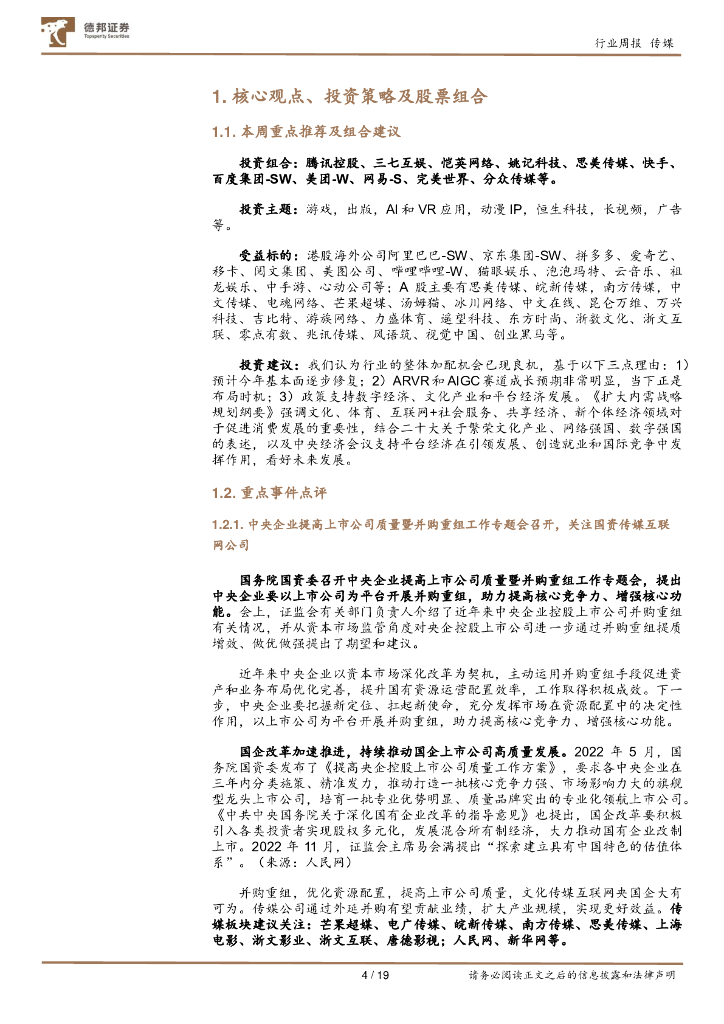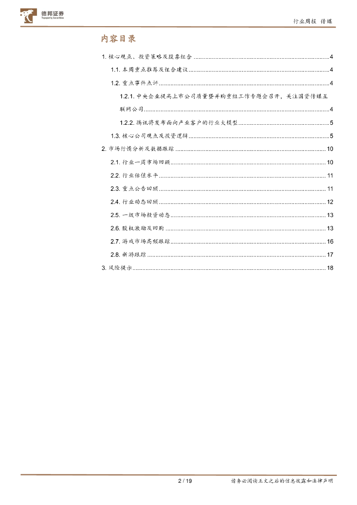 德邦证券:传媒互联网行业周报:并购重组有望助推国资传媒互联网公司;关注腾讯行业大模型发布会.pdf