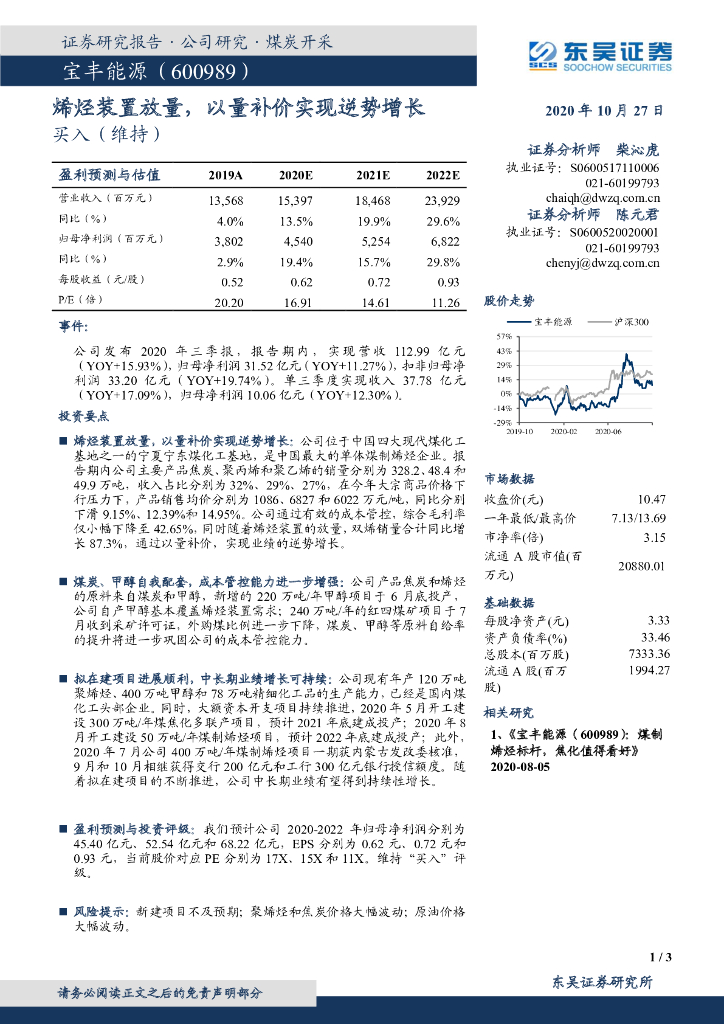 东吴证券:宝丰能源(600989)-烯烃装置放量,以量补价实现逆势增长.pdf