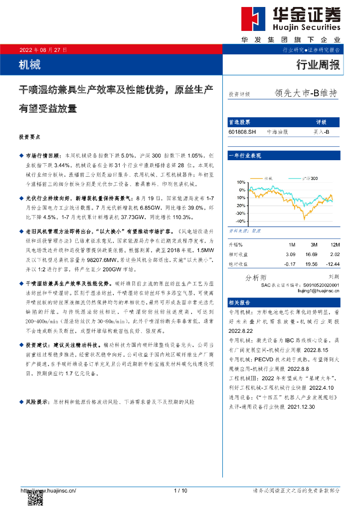 华金证券:机械行业周报:干喷湿纺兼具生产效率及性能优势,原丝生产有望受益放量.pdf