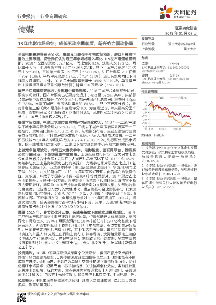 天风证券:传媒行业专题研究:18年电影市场总结:成长驱动由量转质,新兴势力搅动格局.pdf