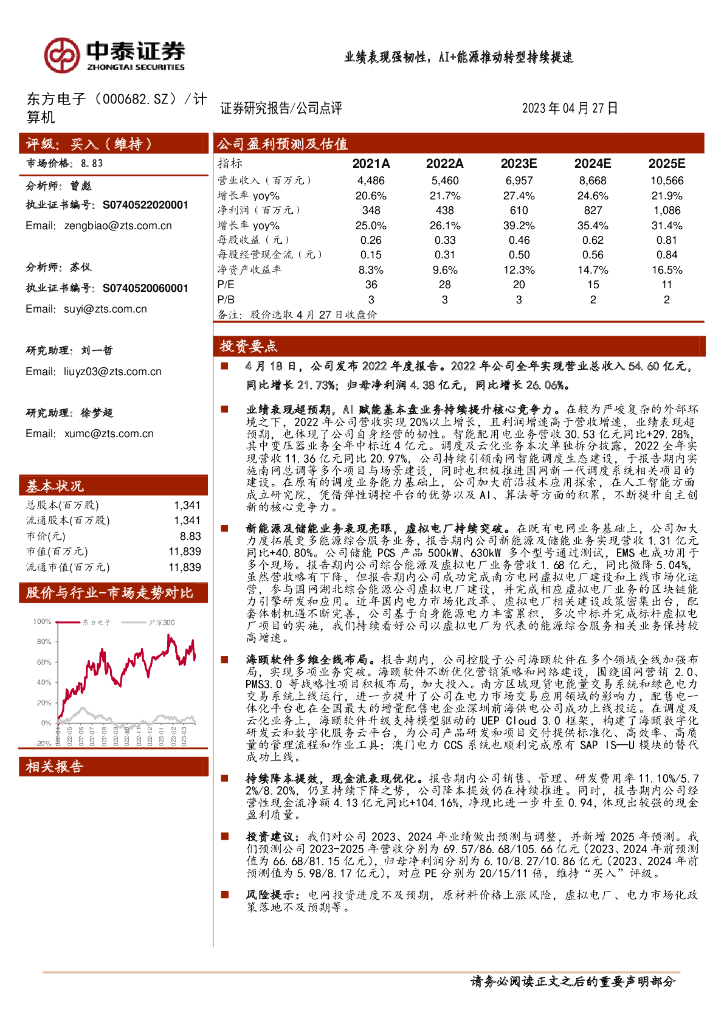 中泰证券:东方电子(000682)-业绩表现强韧性,AI+能源推动转型持续提速.pdf
