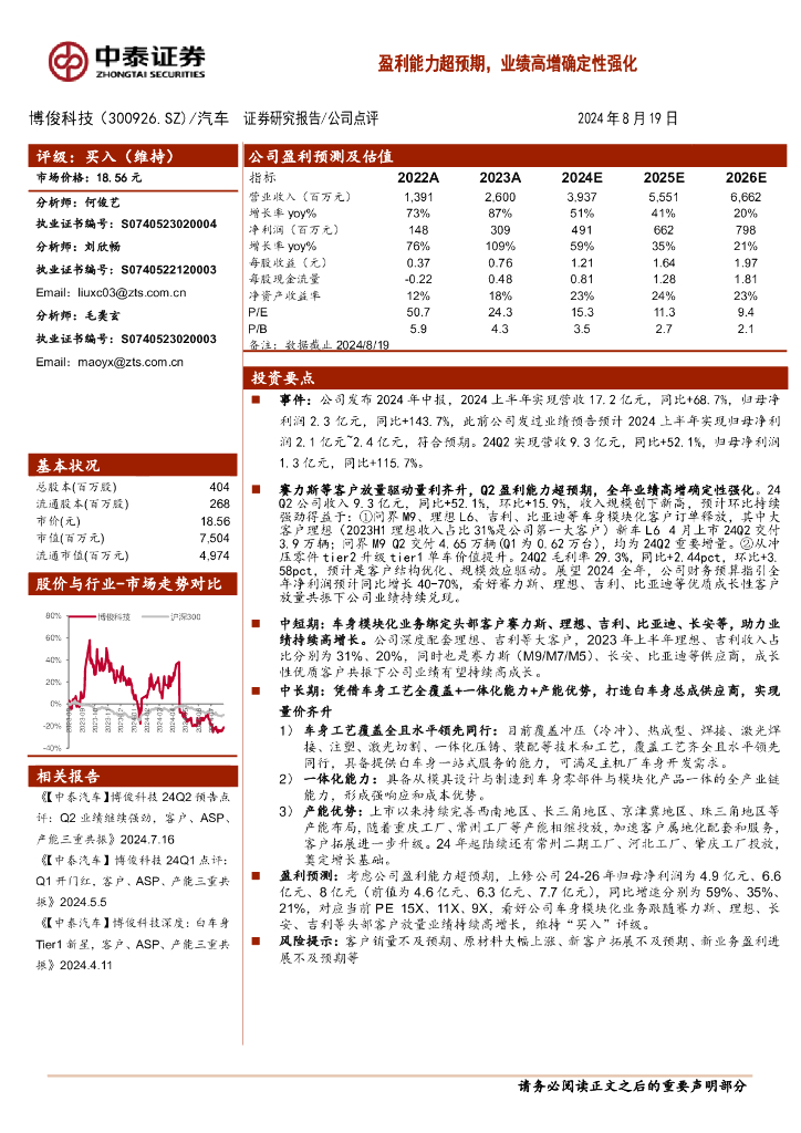 中泰证券:博俊科技(300926)-盈利能力超预期,业绩高增确定性强化.pdf