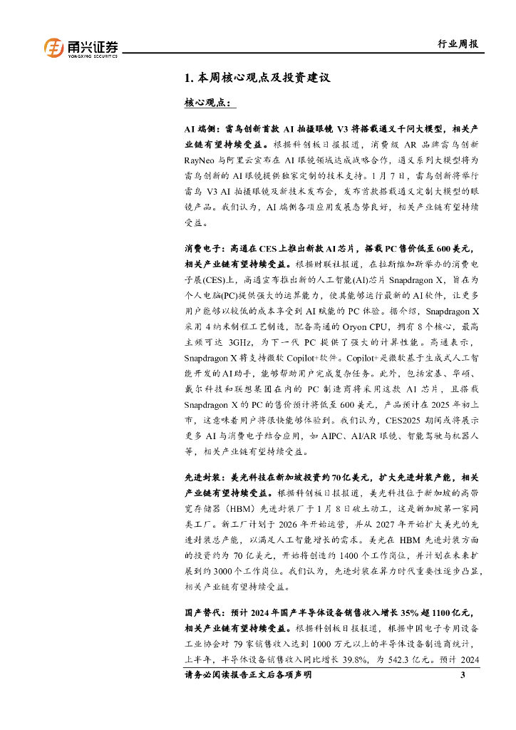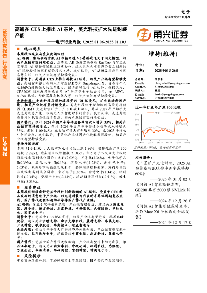 甬兴证券:电子行业周报:高通在CES上推出AI芯片,美光科技扩大先进封装产能.pdf