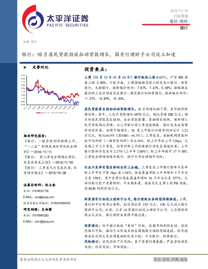 太平洋证券:银行行业周报:10月居民贷款投放拉动贷款增长,国有行理财子公司设立加速.pdf