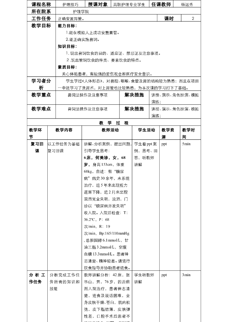 《护理技巧》电子教案-子任务一 认识鼻饲法.pdf