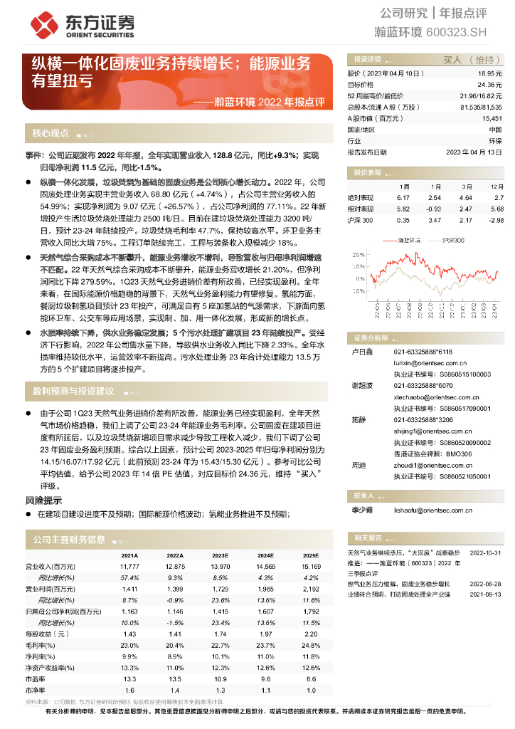 东方证券:瀚蓝环境2022年报点评:纵横一体化固废业务持续增长;能源业务有望扭亏.pdf
