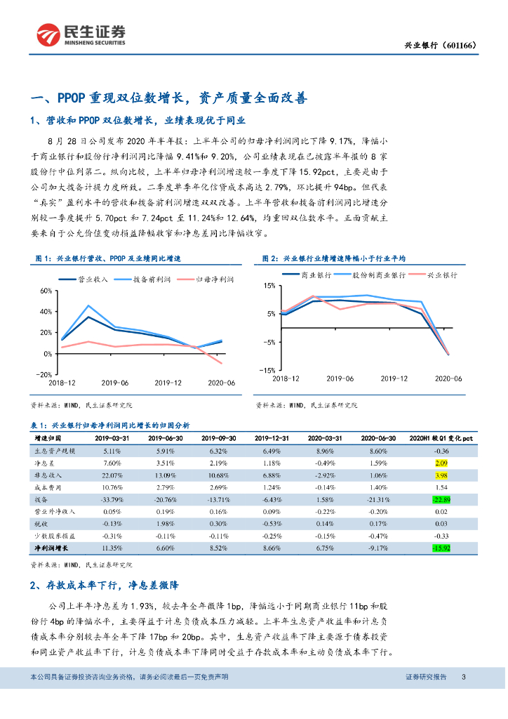 民生证券:详细解读兴业银行2020年半年报:PPOP重现双位数增长,资产质量全面改善.pdf