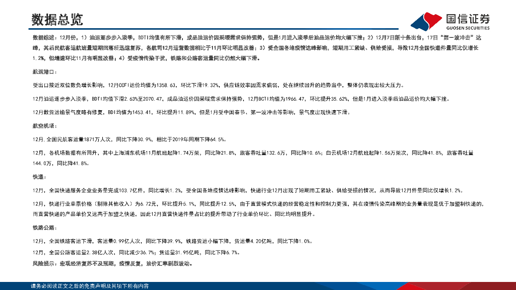 国信证券:2022年12月交运行业数据观察:疫情峰值扰动已过,看好疫后复苏弹性.pdf