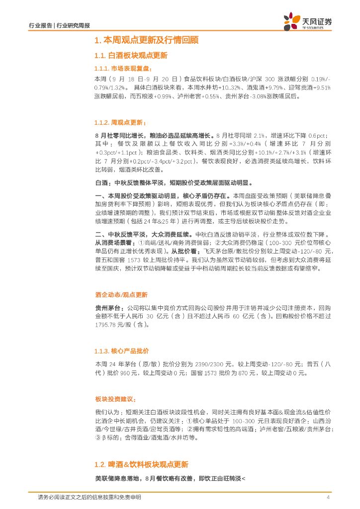 天风证券:食品饮料行业酒水饮料周报:中秋反馈平淡,大众消费表现相对优秀.pdf