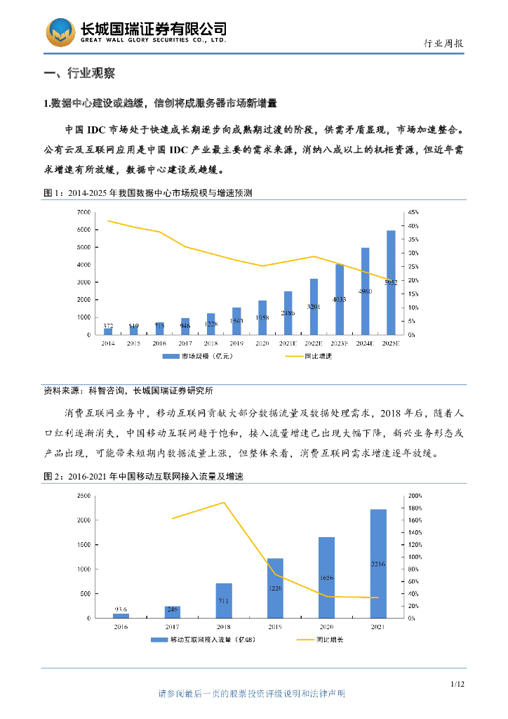 长城国瑞证券:电子行业双周报2022年第10期总第10期:数据中心建设或趋缓 信创将成服务器市场新增量.pdf
