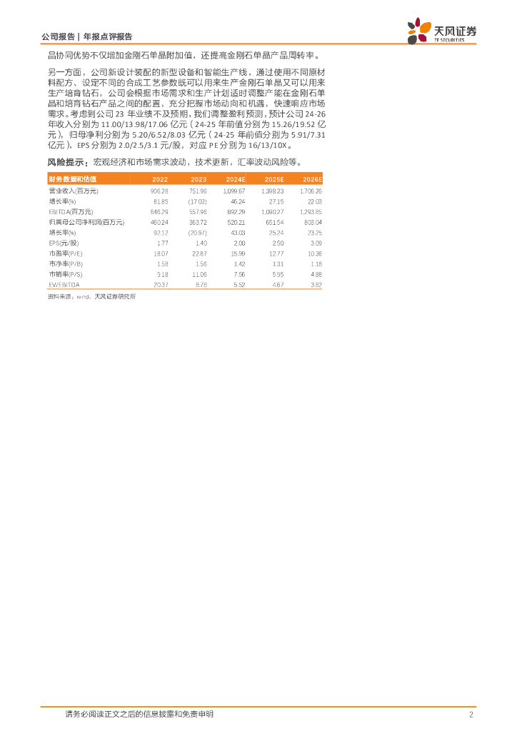 天风证券:力量钻石(301071)-期待全年业绩复苏.pdf