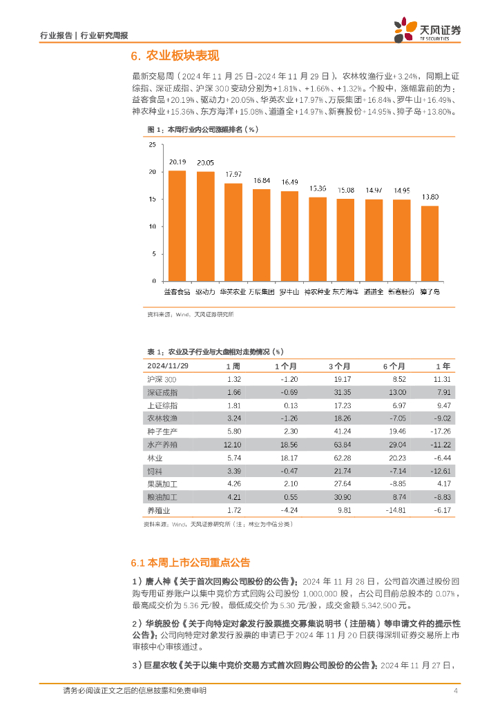天风证券:农林牧渔行业2024年第47周报:需求增长带动猪价上涨,重视本轮周期持续性!.pdf