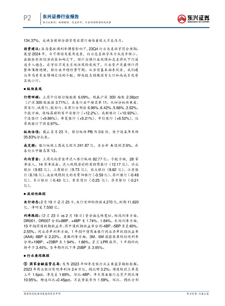 东兴证券:银行业跟踪:规模稳增、息差收窄,行业利润增速环比改善.pdf