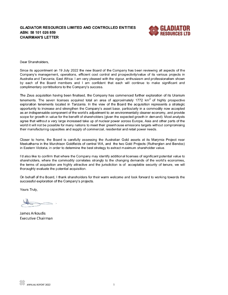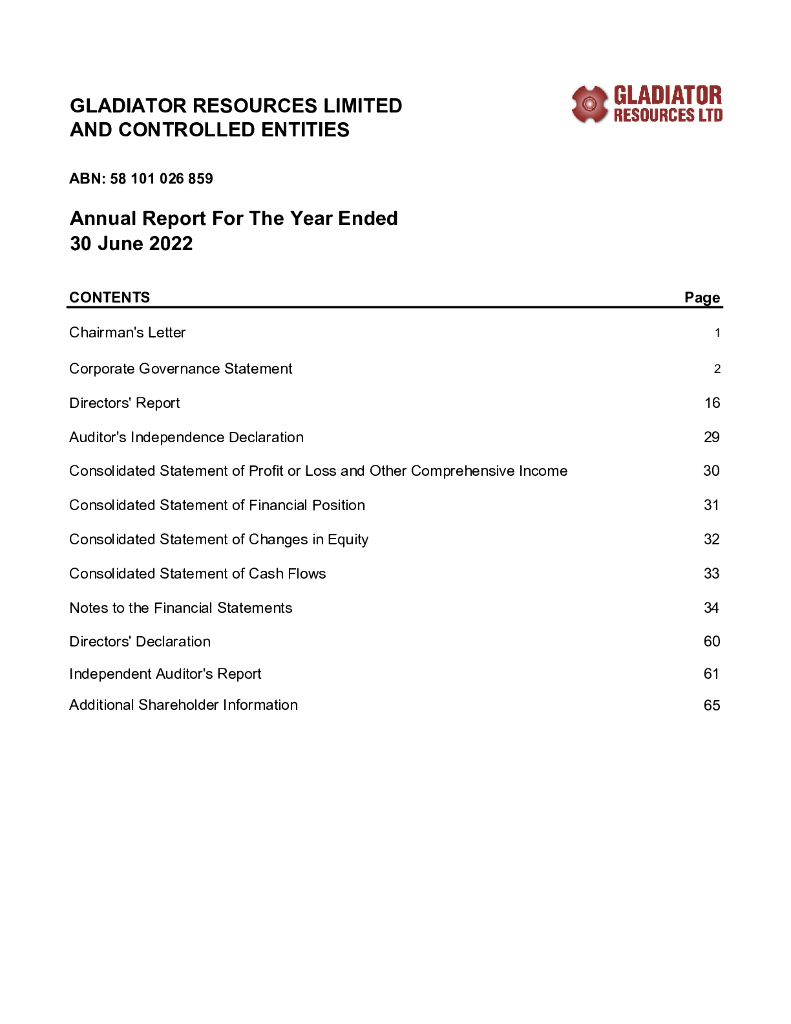 Gladiator Resources Limited(GLA)2022财年年度报告(英文版).pdf