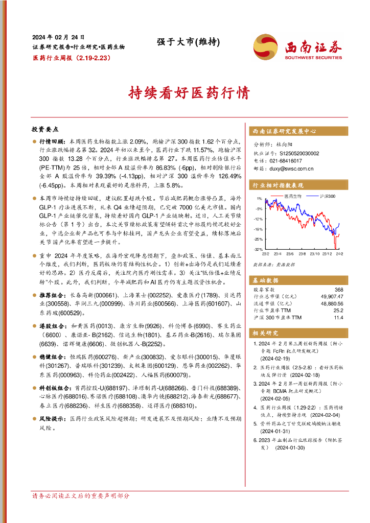 西南证券:医药行业周报:持续看好医药行情.pdf
