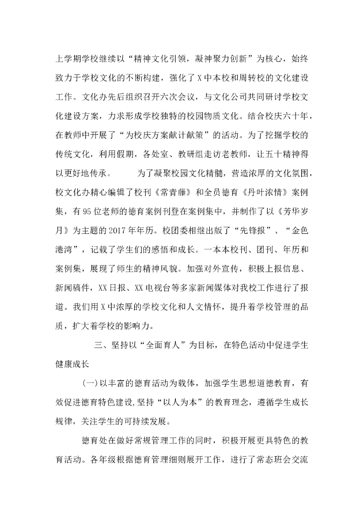 XX中学2017年度学校工作总结.doc