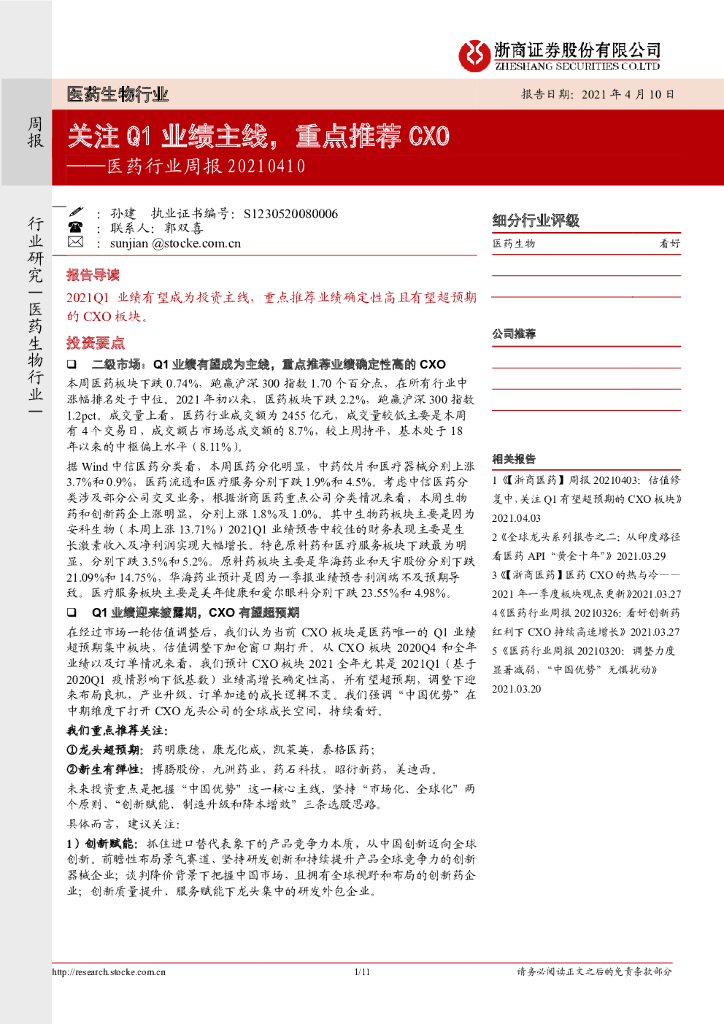 浙商证券:医药行业周报:关注Q1业绩主线,重点推荐CXO.pdf