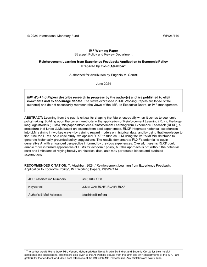 国际货币基金组织:2024强化经验反馈学习:在经济政策中的应用报告(英文版).pdf